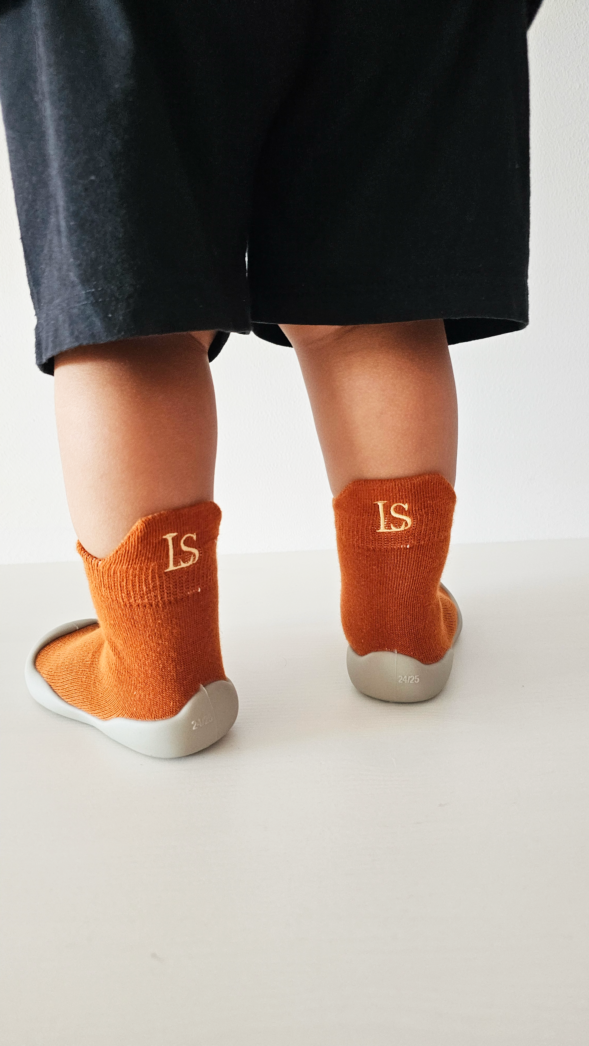Vi förstår att det känns naturligt att tänka att barnet snart växer ur dem. Men just med strumpskor är en exakt passform viktig från start! Därför rekommenderar vi att mäta ditt barns fot och inte välja en större storlek i förväg utan hellre investera i två storlekar: en som passar perfekt nu och en att växa i.